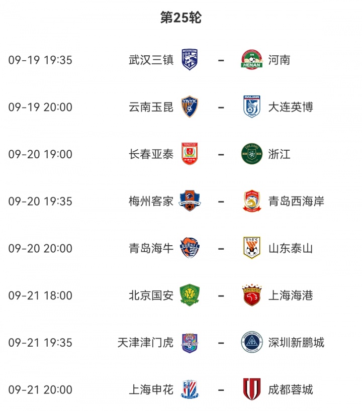 09月12日讯 中超第24轮先赛4场,海港4-2玉昆,蓉城1-0亚泰,国安0-2河南,申花3-3泰山!争冠4队积分情况:蓉城53分海港51分,申花50分国安48分!下轮国安vs海港,申花vs蓉城!下轮对阵